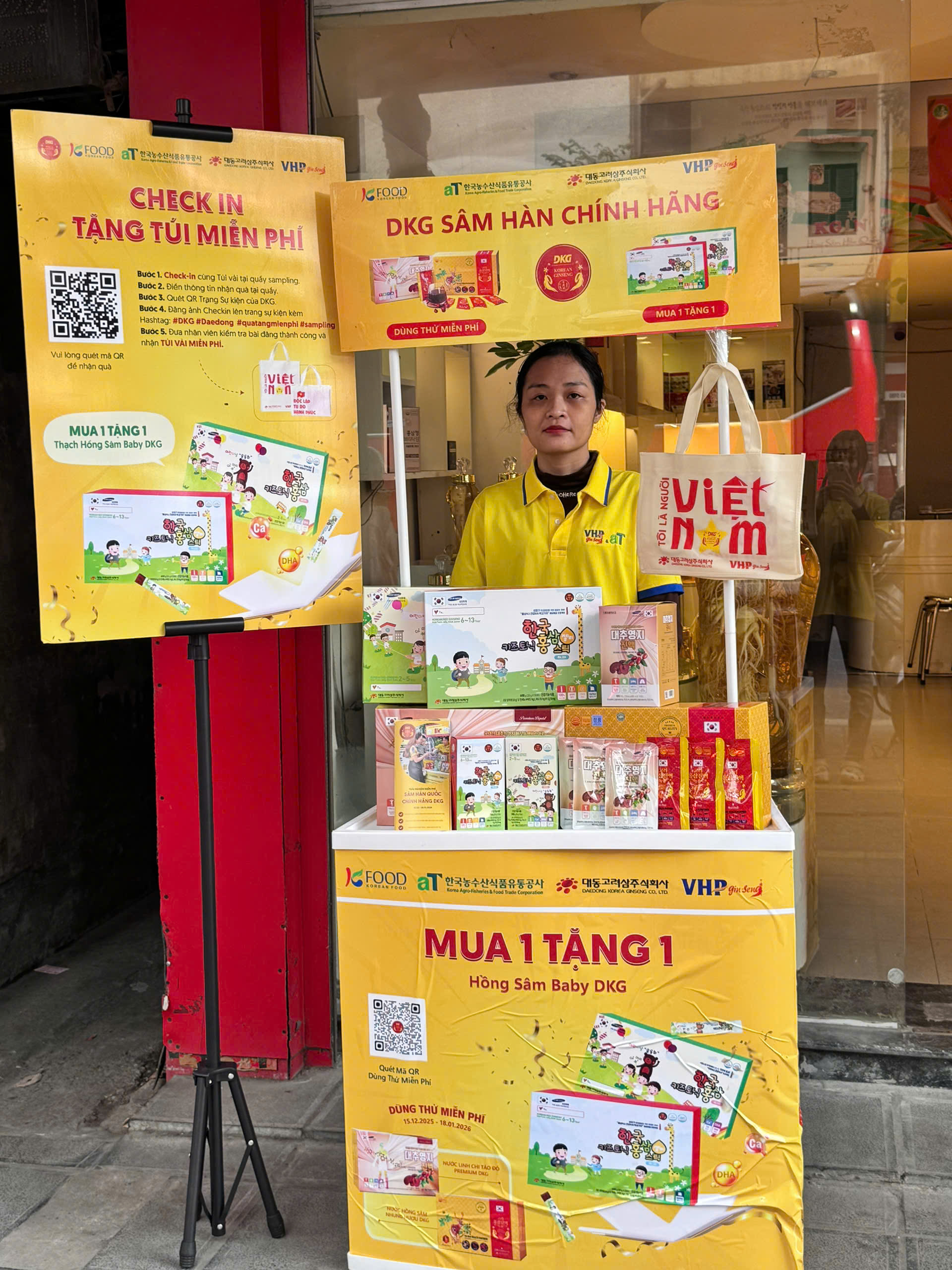 Nằm trong chuỗi hoạt động Quà tặng được tài trợ bởi Daedong Korea Ginseng (DKG) và aT (Hiệp hội Nông Thuỷ sản Hàn Quốc), chương trình AT Sampling 2025 – Trải nghiệm dùng thử sản phẩm và nhận quà tặng miễn phí được tổ chức tại KGin | Số 121A Phố Huế, Hai Bà Trưng, Hà Nội vào thời gian 17/12 ~ 22/12/2025. Trân trọng mời quý khách hàng đến thưởng thức hồng sâm và nhận quà tặng từ chương trình.
