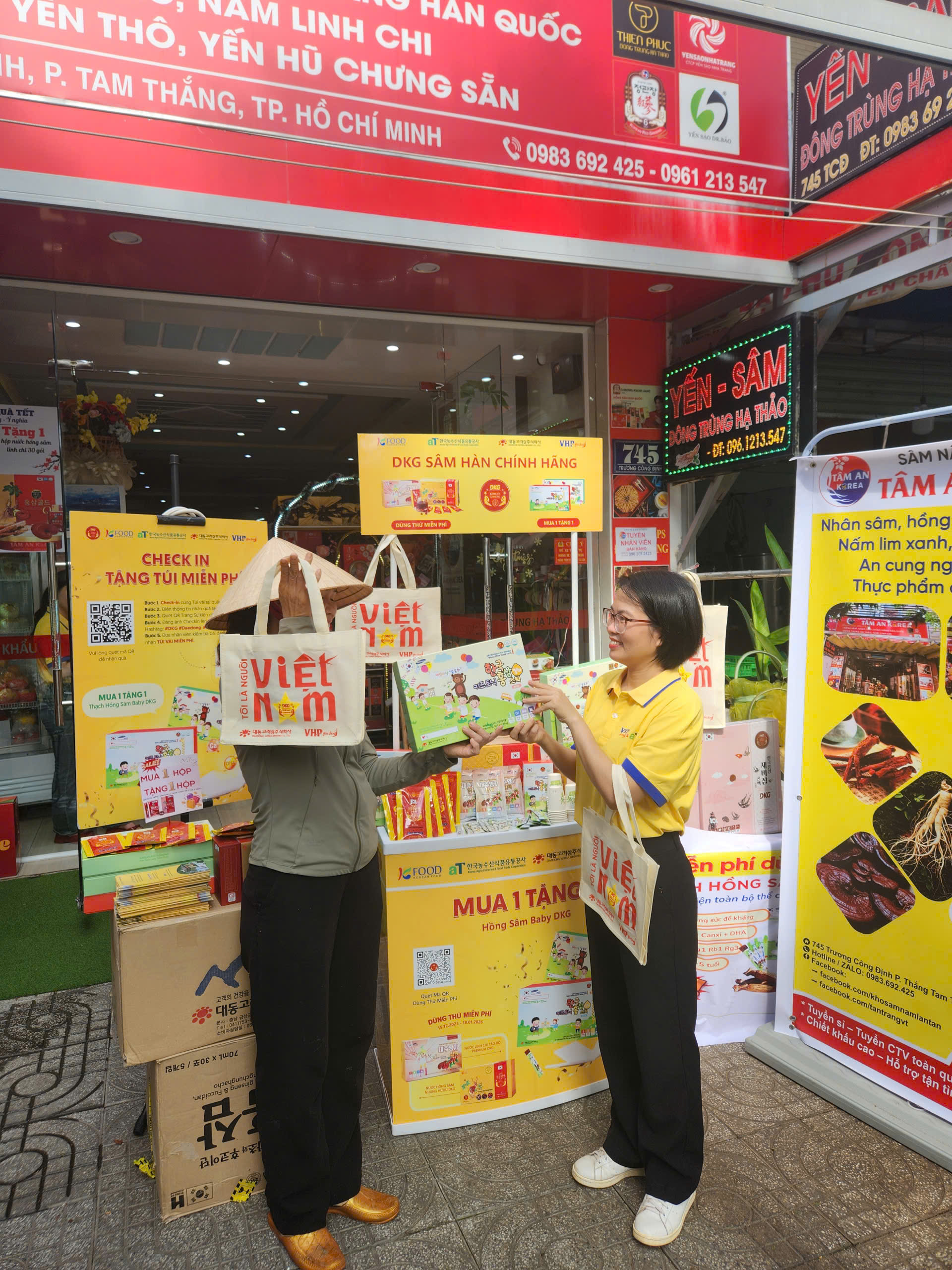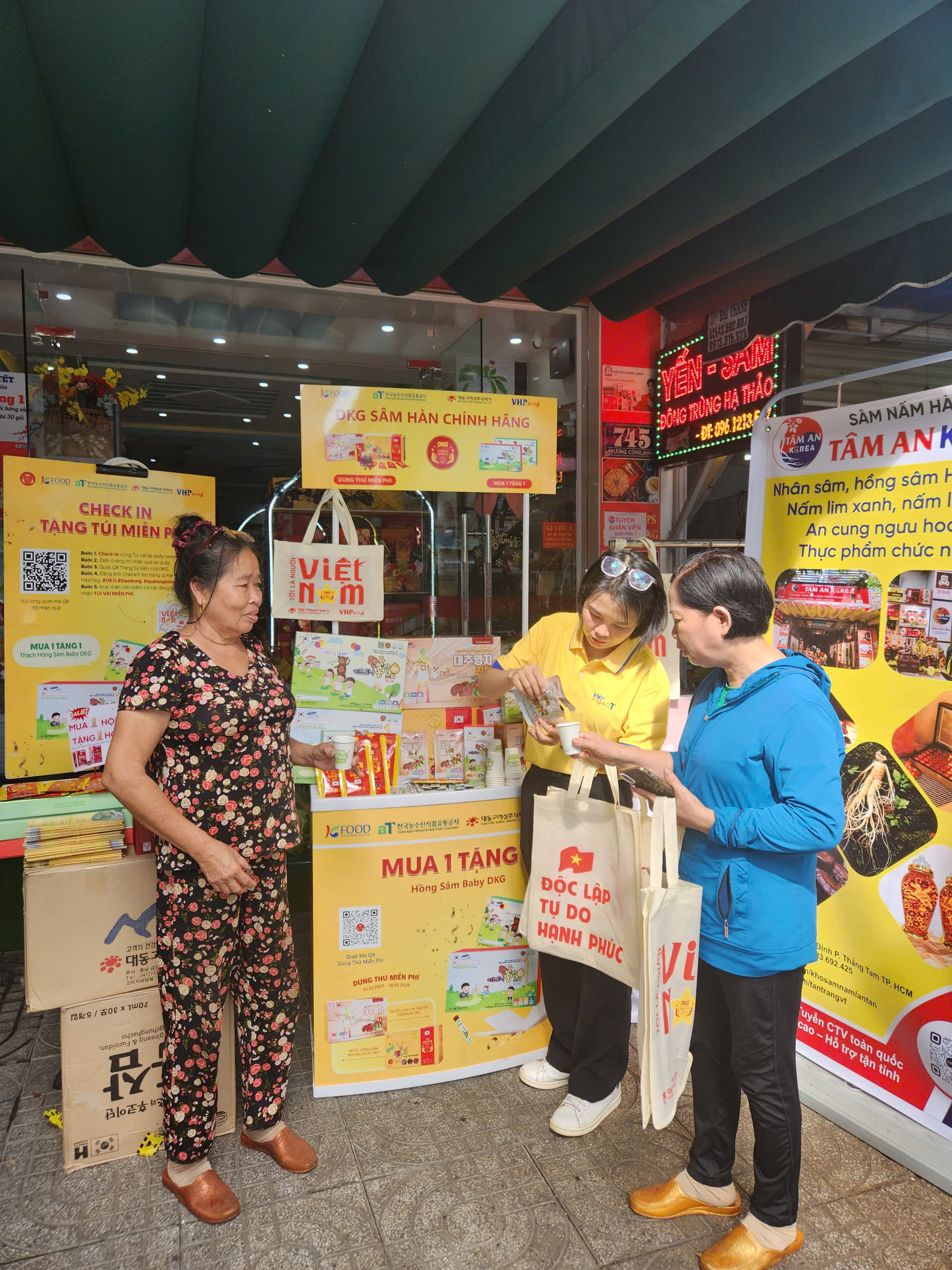 Nằm trong chuỗi hoạt động Quà tặng được tài trợ bởi Daedong Korea Ginseng (DKG) và aT (Hiệp hội Nông Thuỷ sản Hàn Quốc), chương trình AT Sampling 2025 – Trải nghiệm dùng thử sản phẩm và nhận quà tặng miễn phí được tổ chức tại Tâm An Korea | Số 745 Trương Công Định, P. Tam Thắng, Q. 9, Tp. Hồ Chí Minh. vào thời gian 24/12 ~ 29/12/2025. Trân trọng mời quý khách hàng đến thưởng thức hồng sâm và nhận quà tặng từ chương trình.