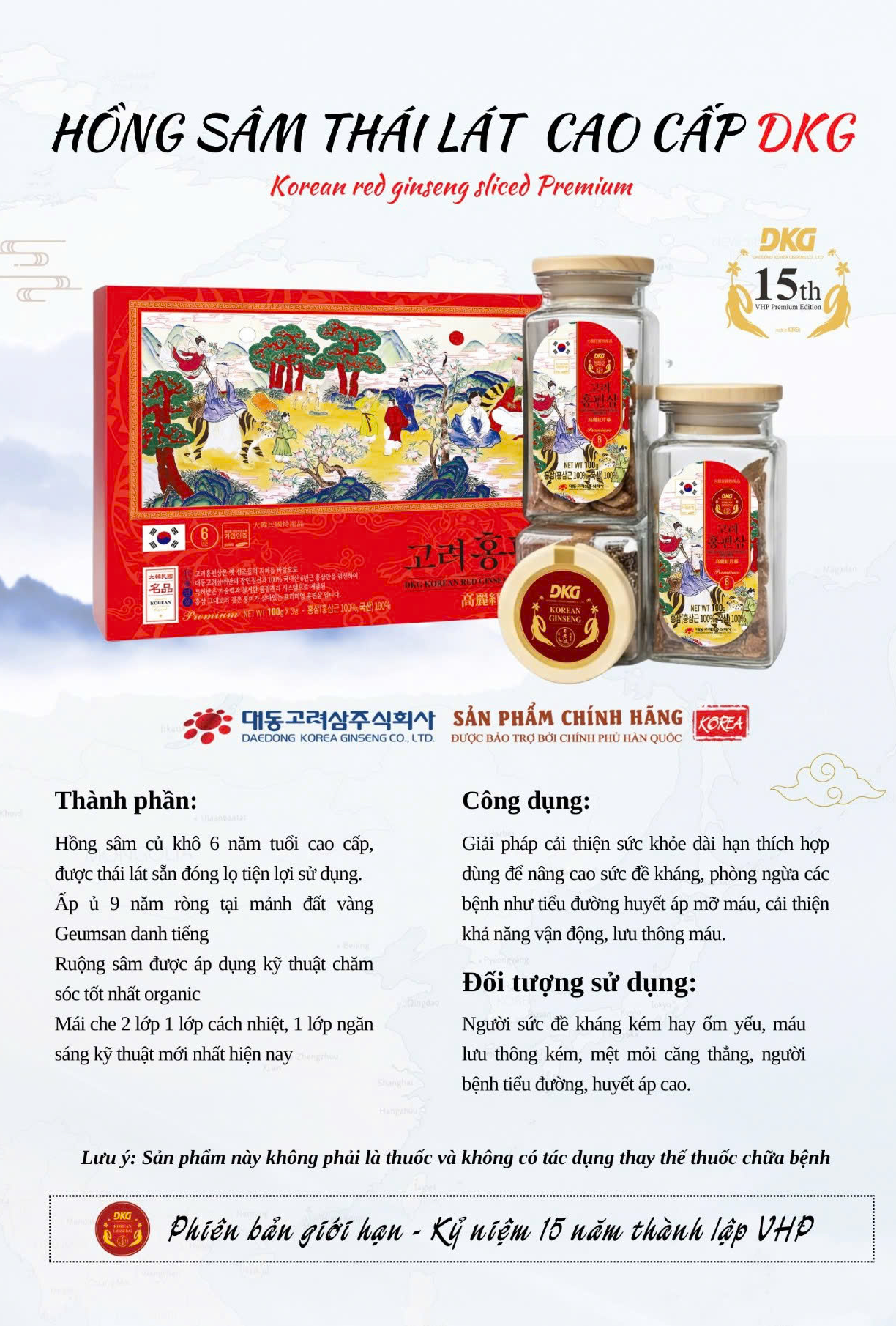 • Hồng sâm thái lát cao cấp DKG - 3 lọ/hộp (100g/lọ) Hồng sâm thái lát cao cấp DKG - 3 lọ/hộp (100g/lọ) 4.150.000₫