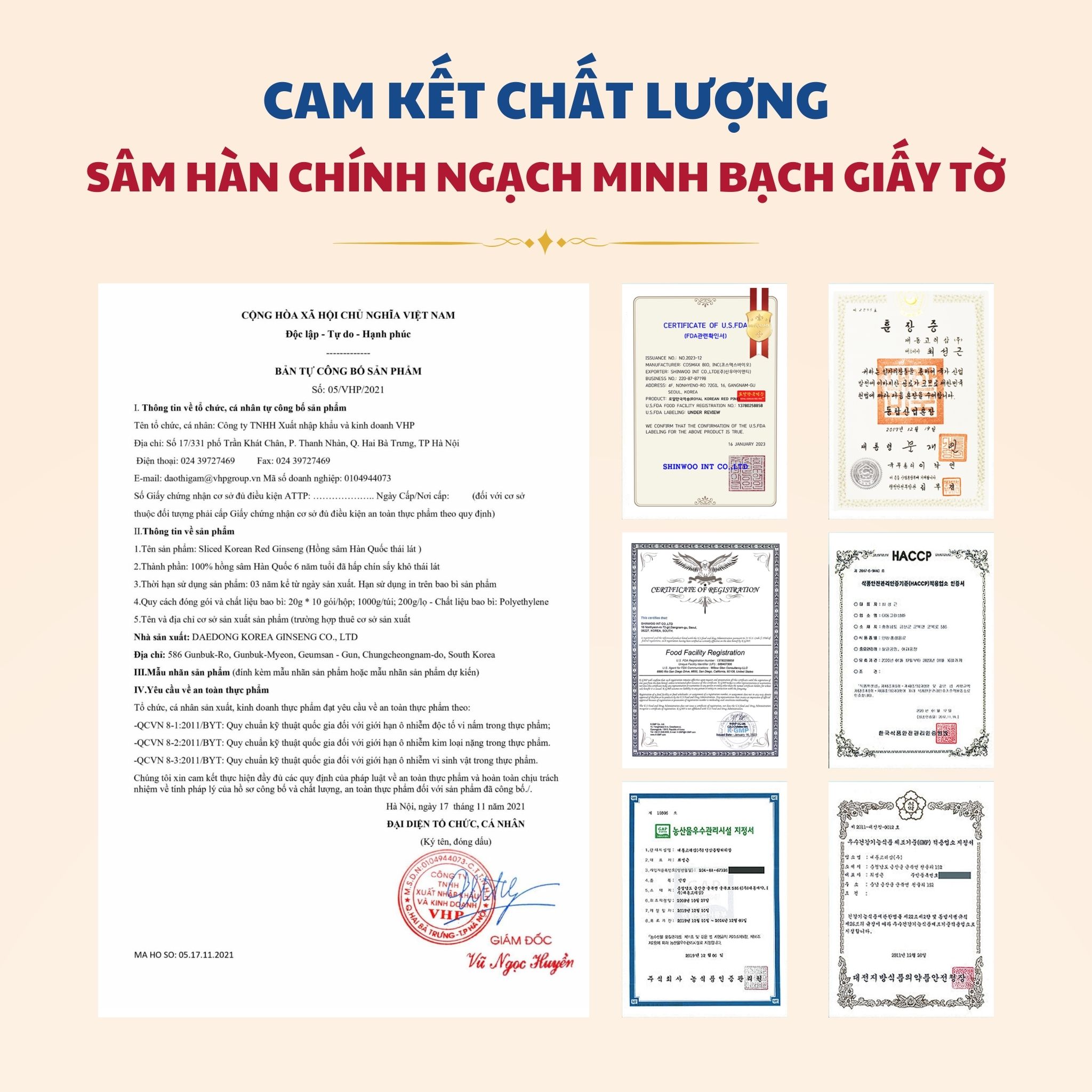 2. Thành phần: 100% hồng sâm Hàn Quốc đã hấp chín sấy khô cắt lát.